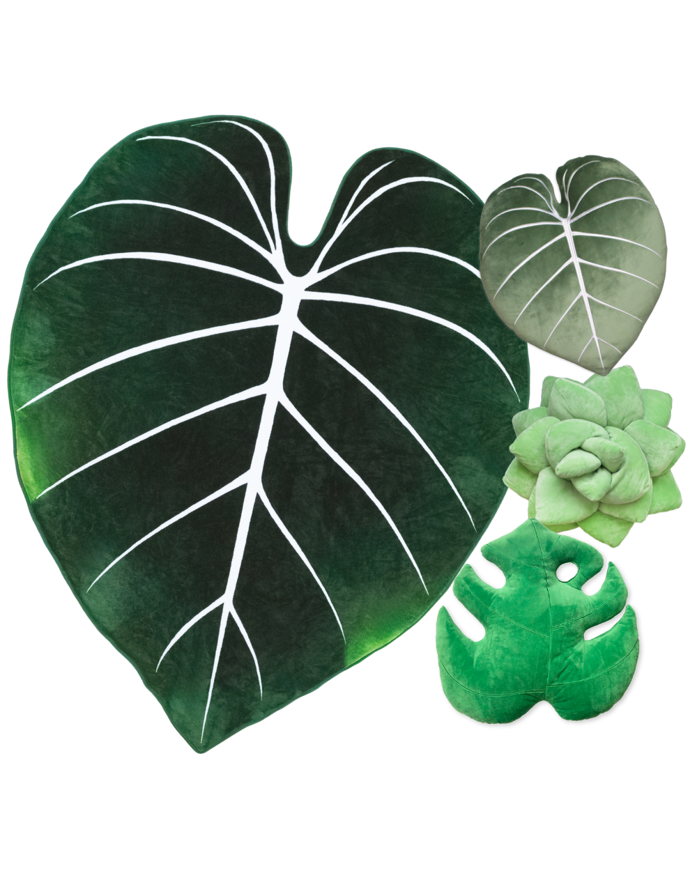 1 x Philodendron Gloriosum Leaf Plush Pillow - Moody Green