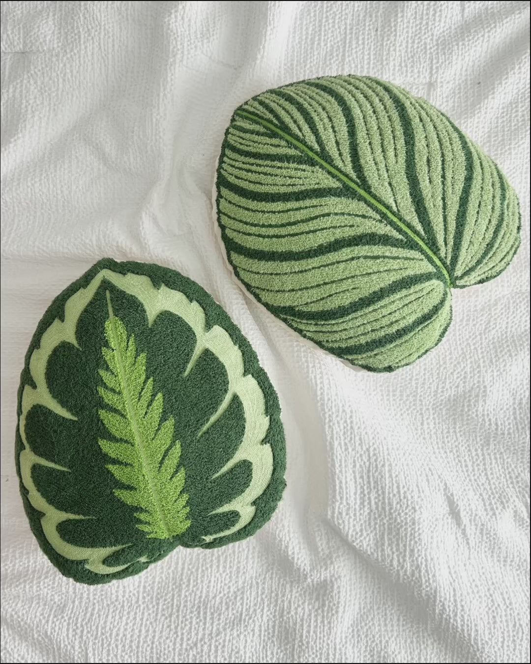 1 x Tufted Calathea Orbifolia Leaf Pillow